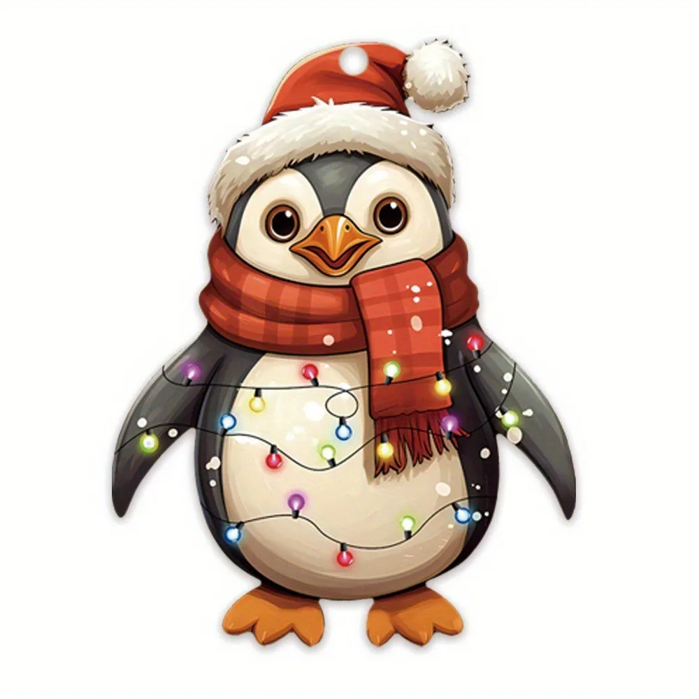 printed cute penguin wooden Christmas ornaments 2024, suitable as souvenirs for women, men, and friends, penguin Christmas tree ornaments, Christmas tree hanging ornam