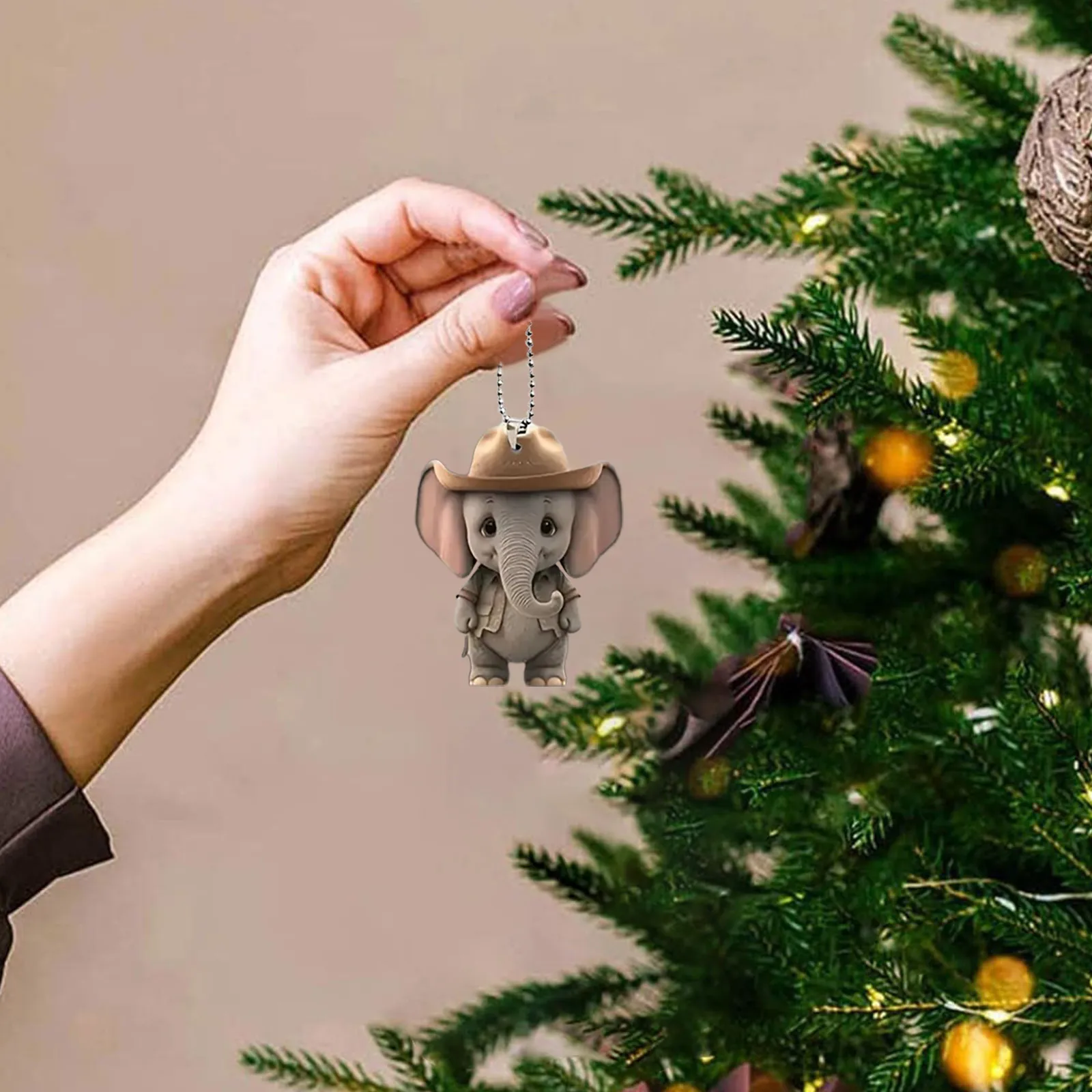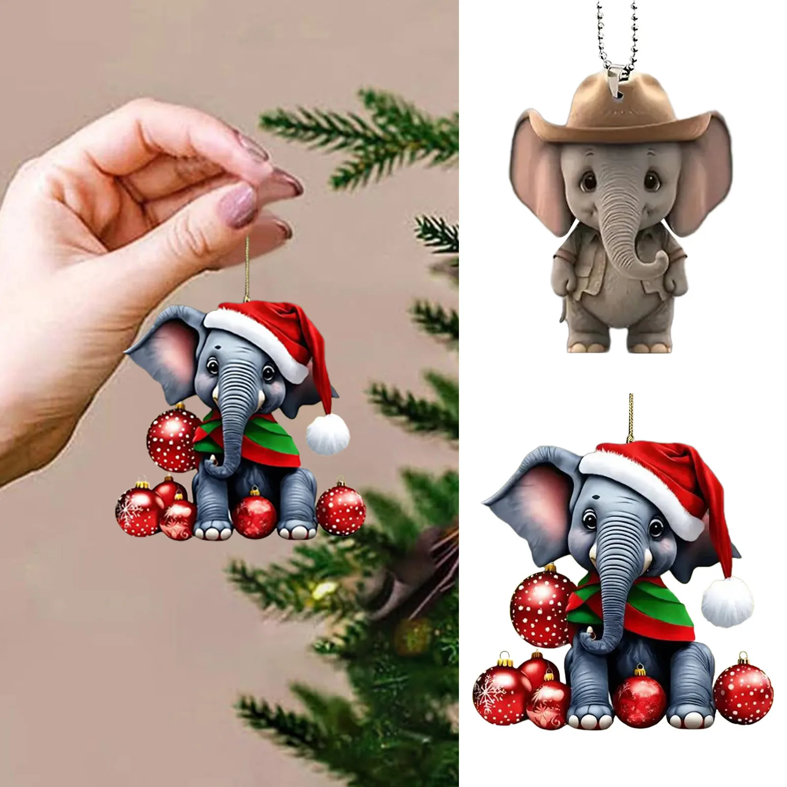 Christmas Hanging Acrylic Cartoon Wearing A Hat Elephant Pattern Christmas Tree Hanging Decorations Festive Home And Car Decoration Supplies
