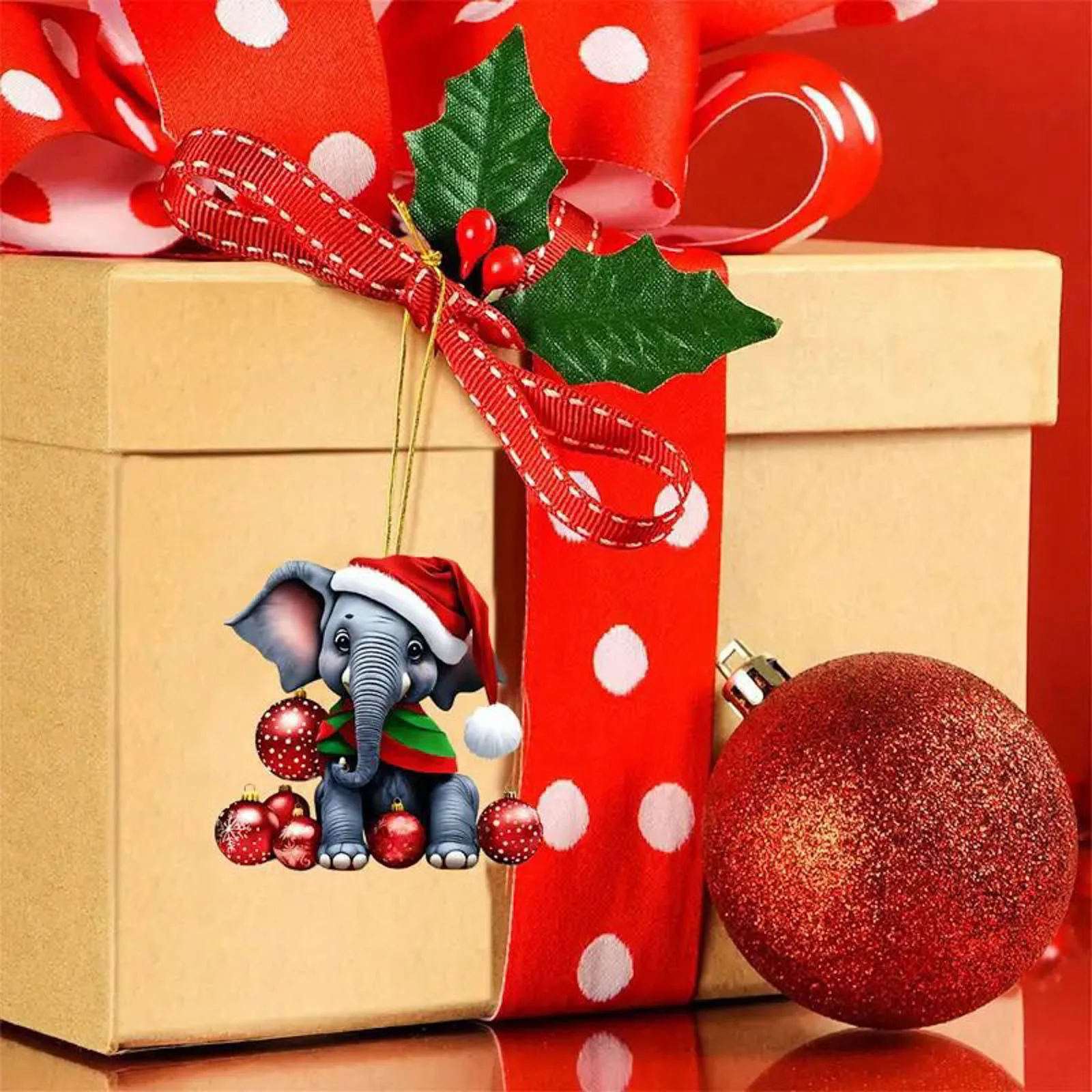 Whimsical Christmas Tree Ornament: a of festive charm to your holiday decor with this acrylic ornament featuring a delightful cartoon elephant wearing a Santa hat. It's a whimsical and eye-catching addition to your Christmas tree.