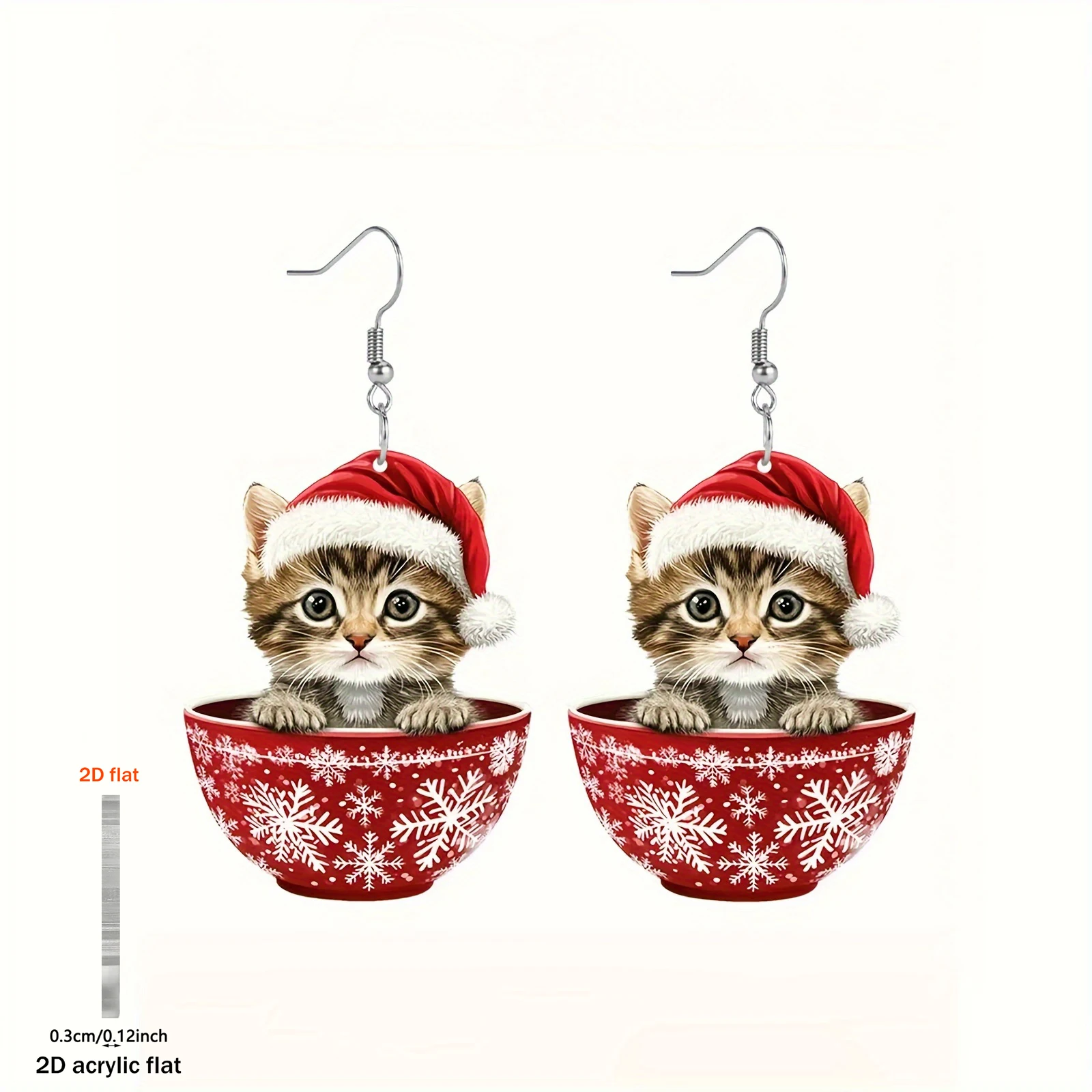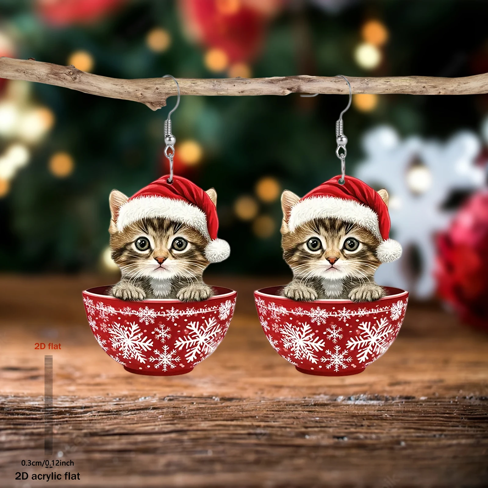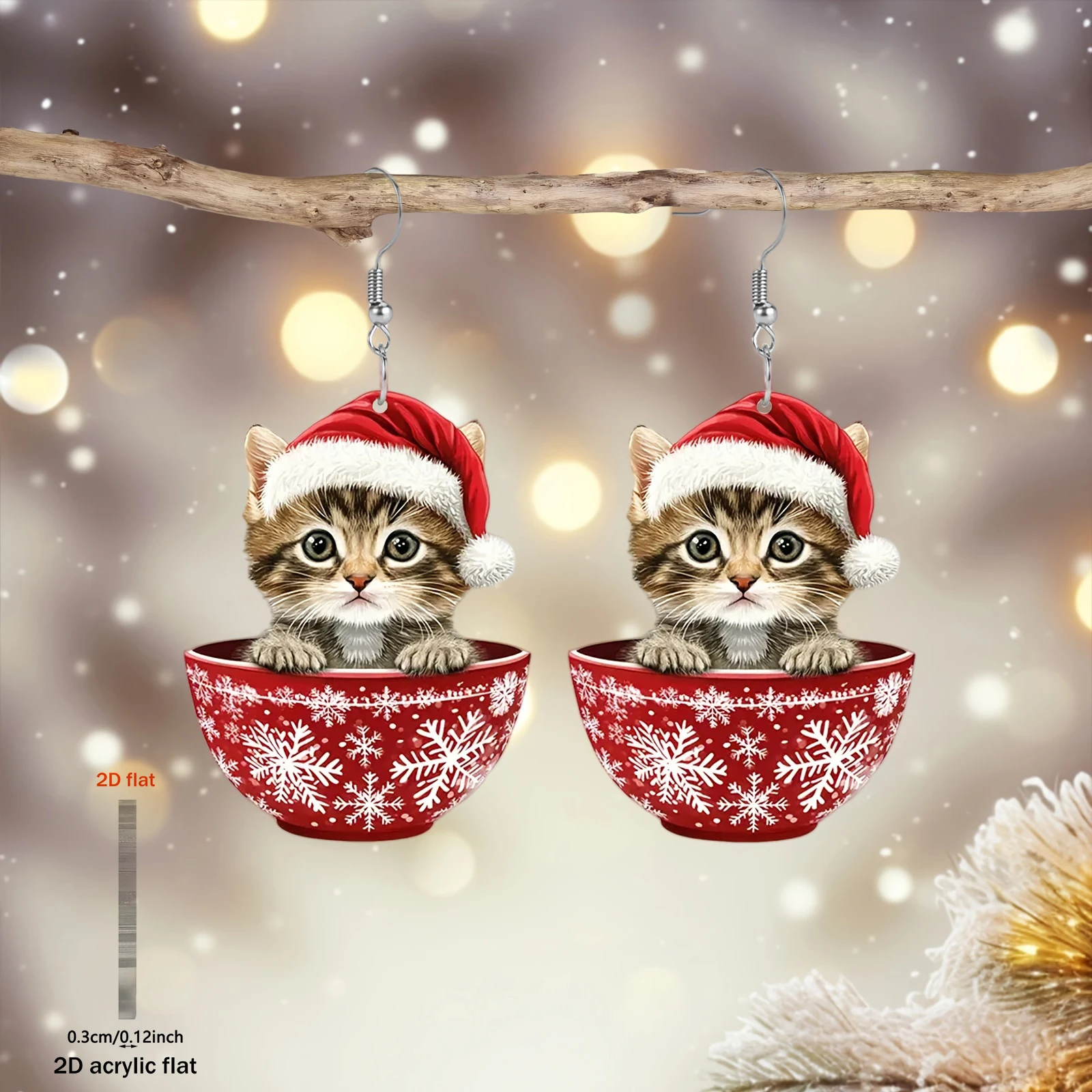 Kitty Snowflake Teacup Christmas Hat Earrings