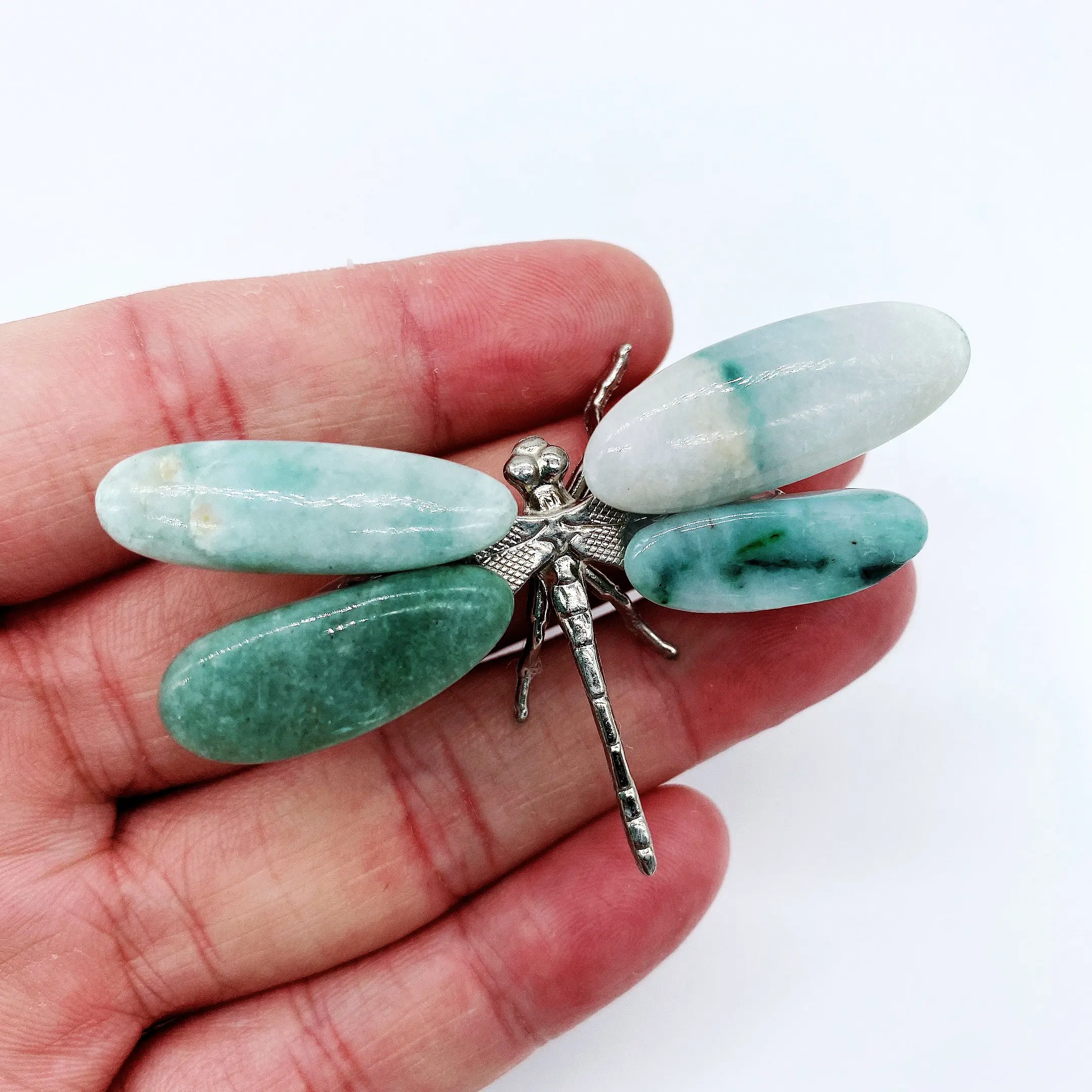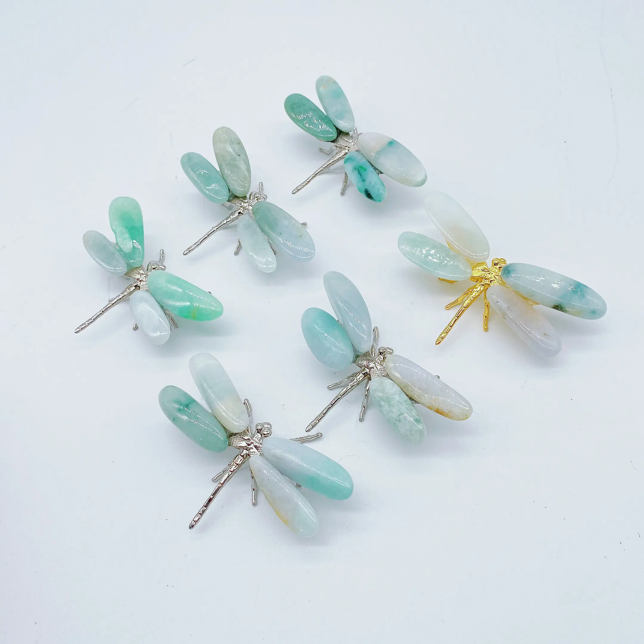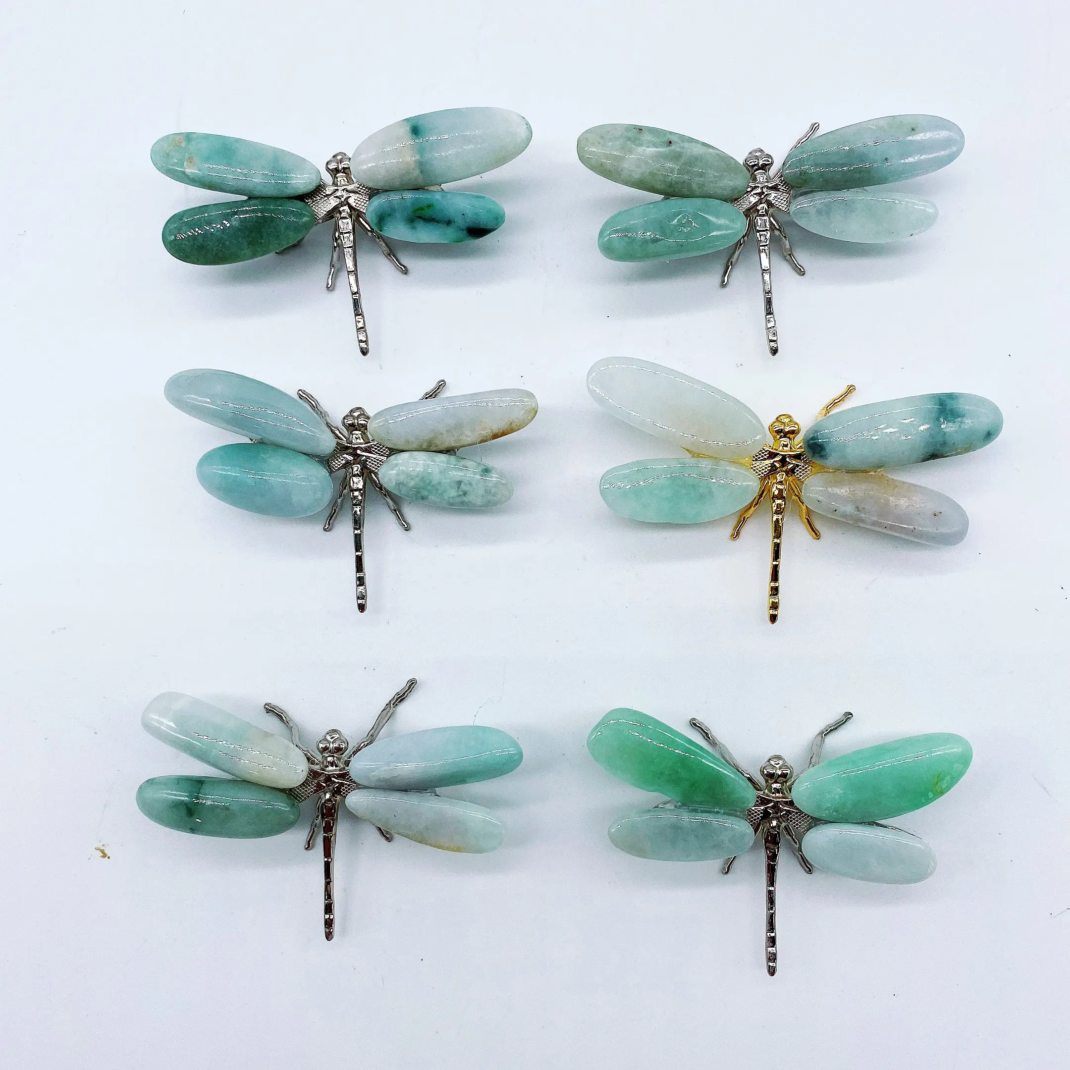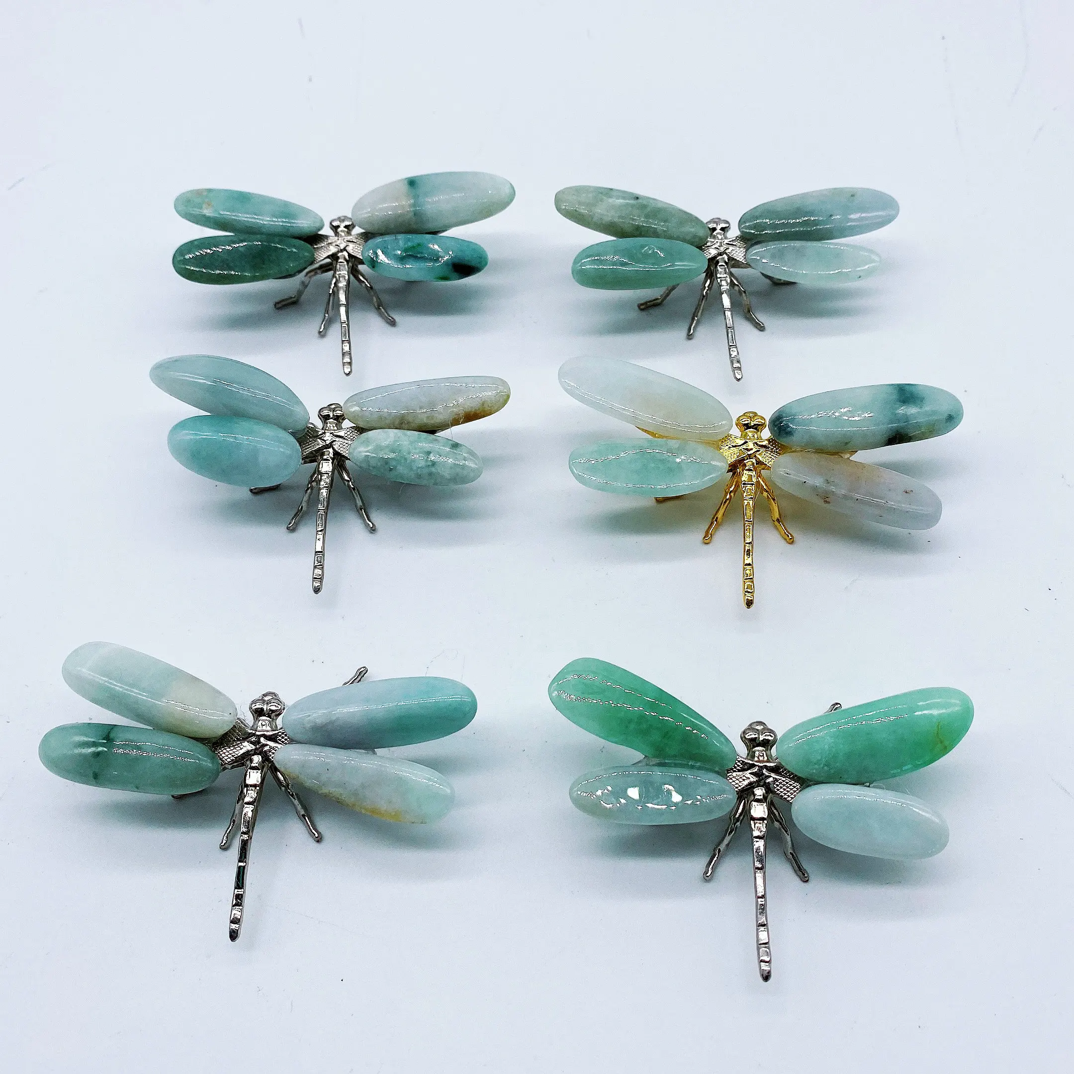 2pcs Natural jade Energy Reiki stone dragonfly carving decoration