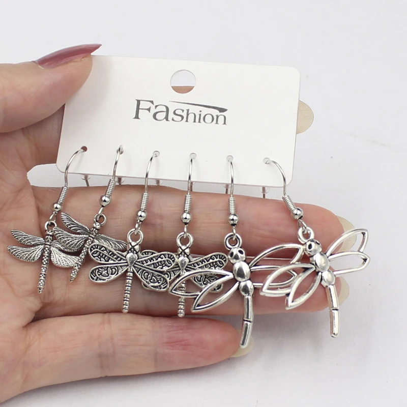 3prs Set Earrings Vintage Dragonfly Drop Dangle Earrings