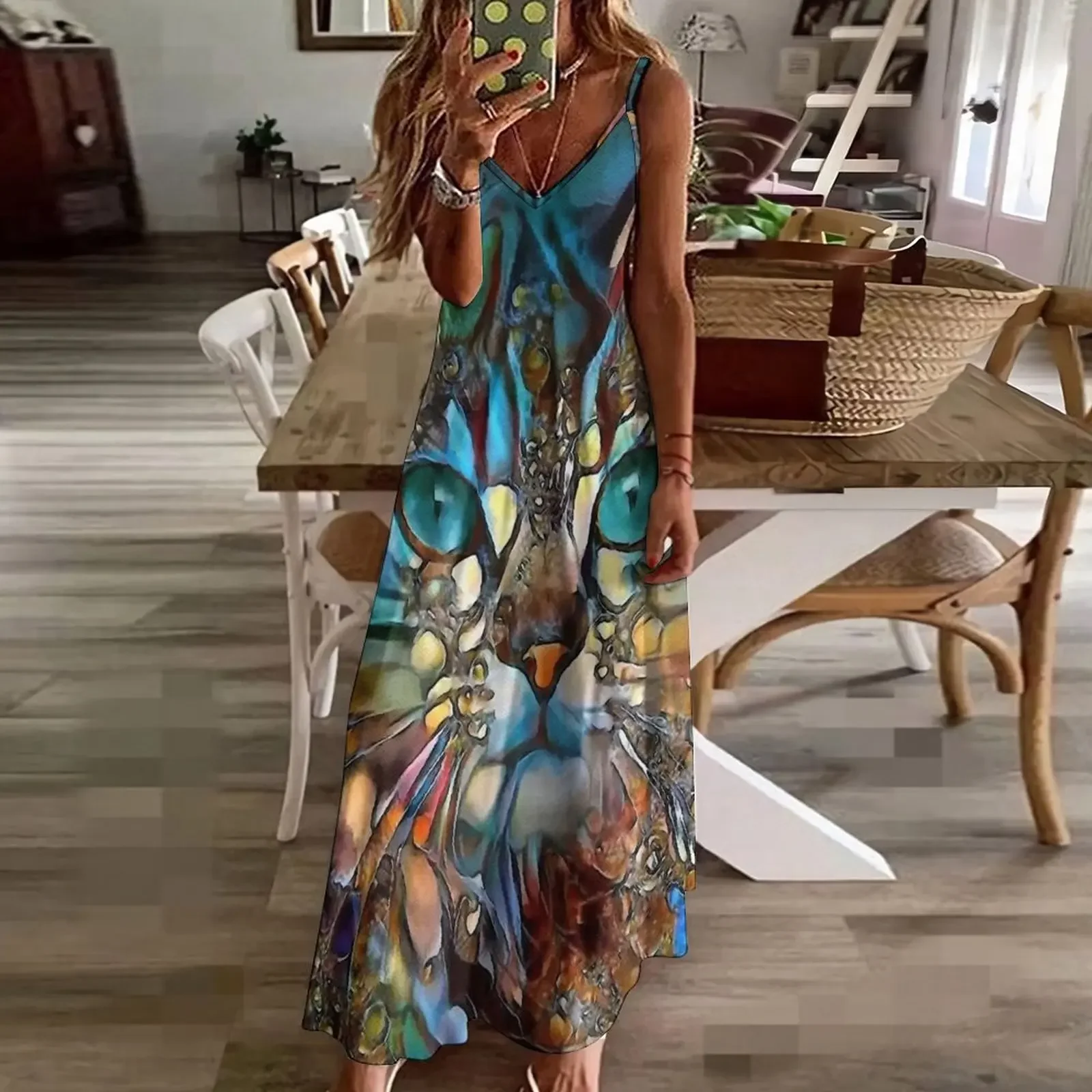 Andyna cat chat lea roche paintings Sleeveless Dress