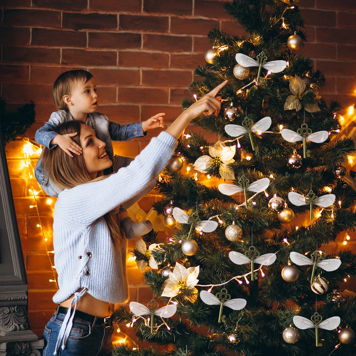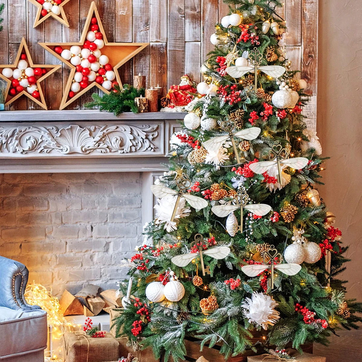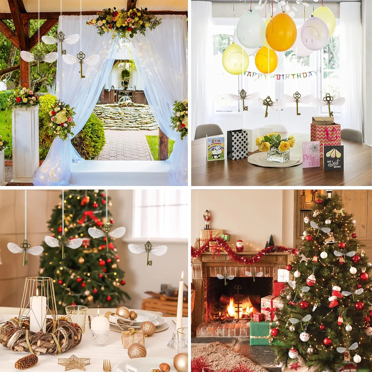 Christmas Dragonfly Vintage Key Metal Pendant Navidad Natal Noel Hanging Favor Merry Christmas Decor For Home 2024 New Year 2025