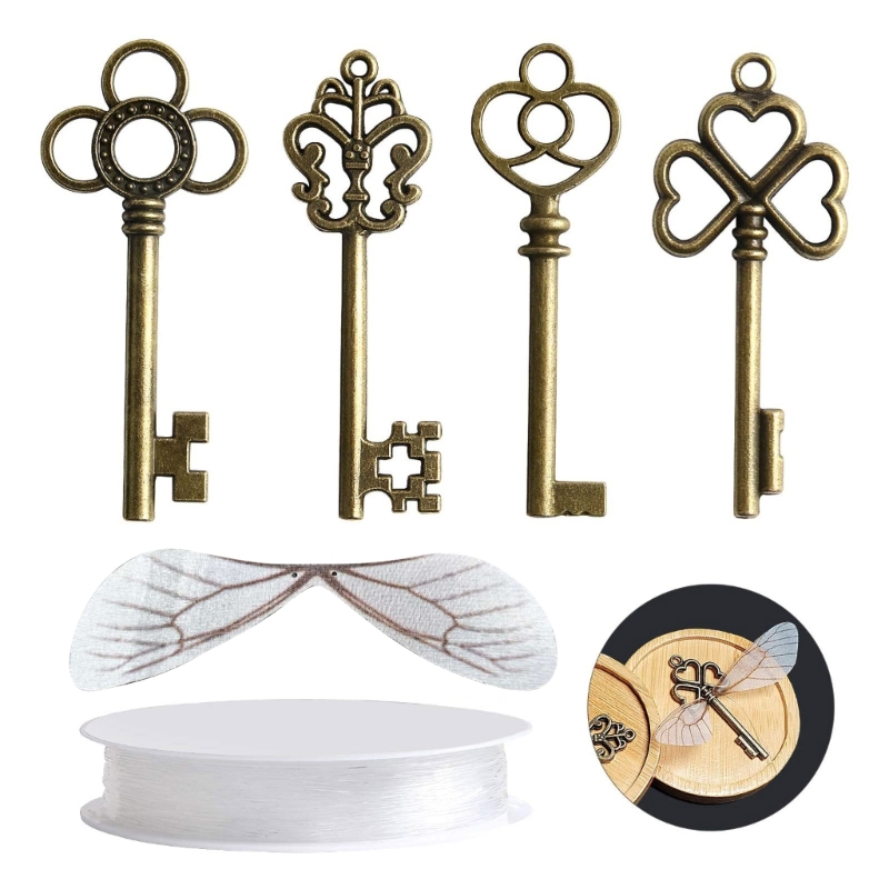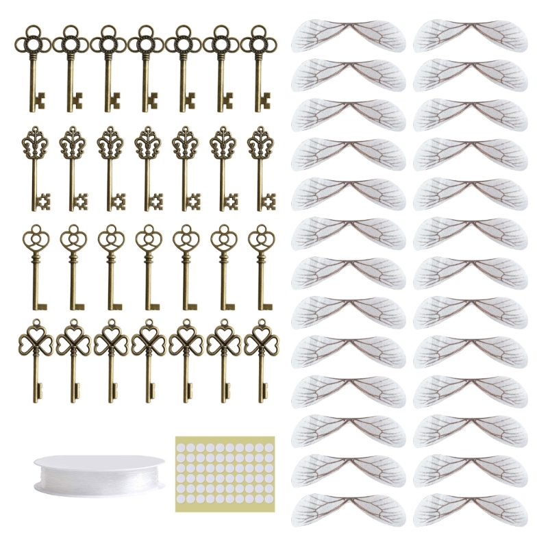 Package: themed flying keys DIY set include 28x vintage keys, 28x wings, 50x double sided sticky, enough quantity to use.