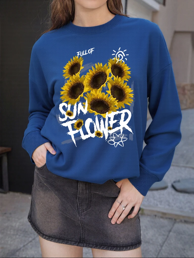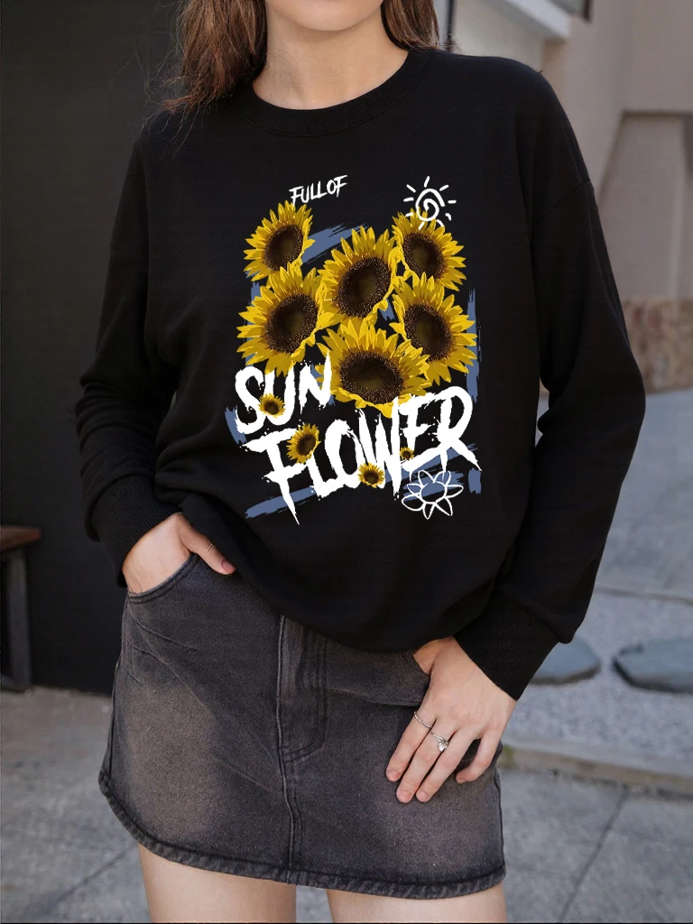 Full Of Sunflower Creative Graffiti Print Woman Sweatshirts