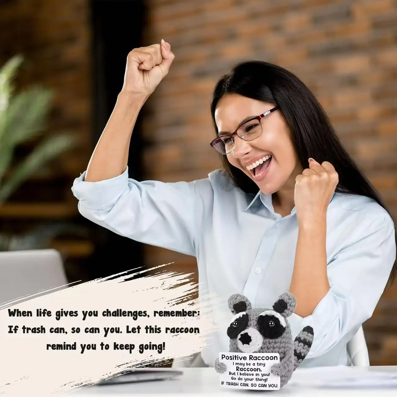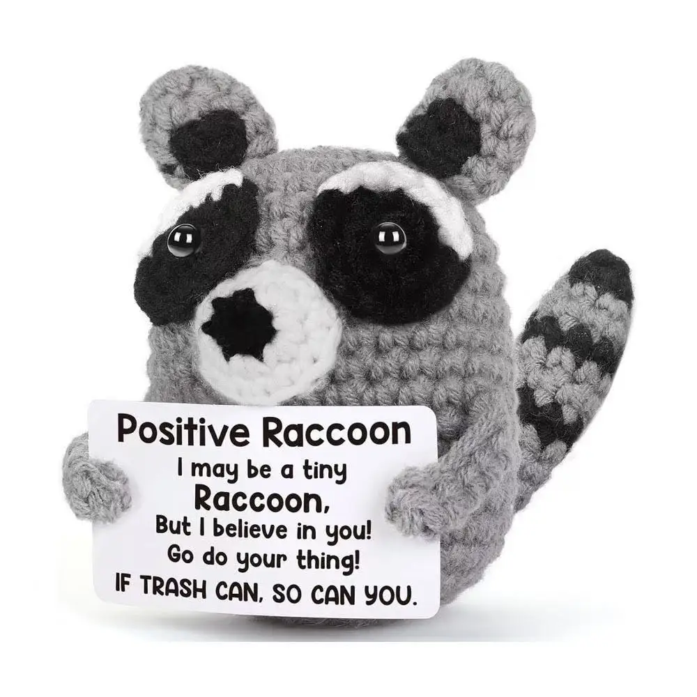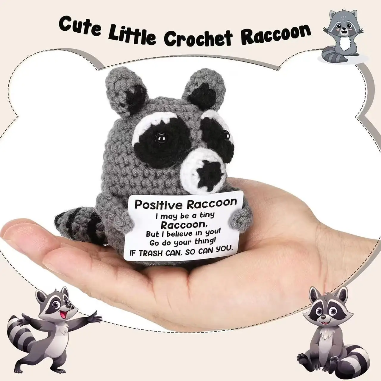 Raccoon Doll Cute Handmade Knitted Positive Decoration
