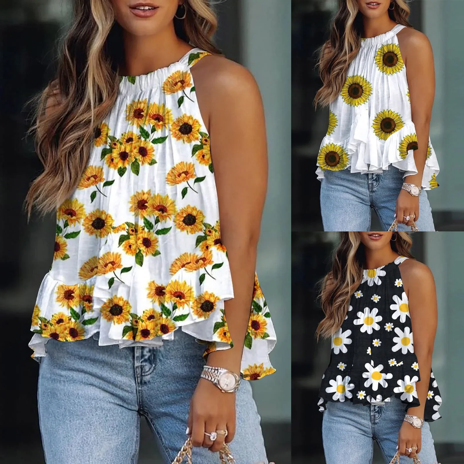 Ladies Shoulder-baring Print Sleeveless V-neck Vest Mini Dress