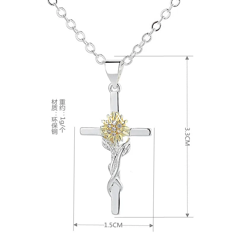 Necklace Cross Gold and Silver Two-tone Sunflower Fresh Flower Pendant