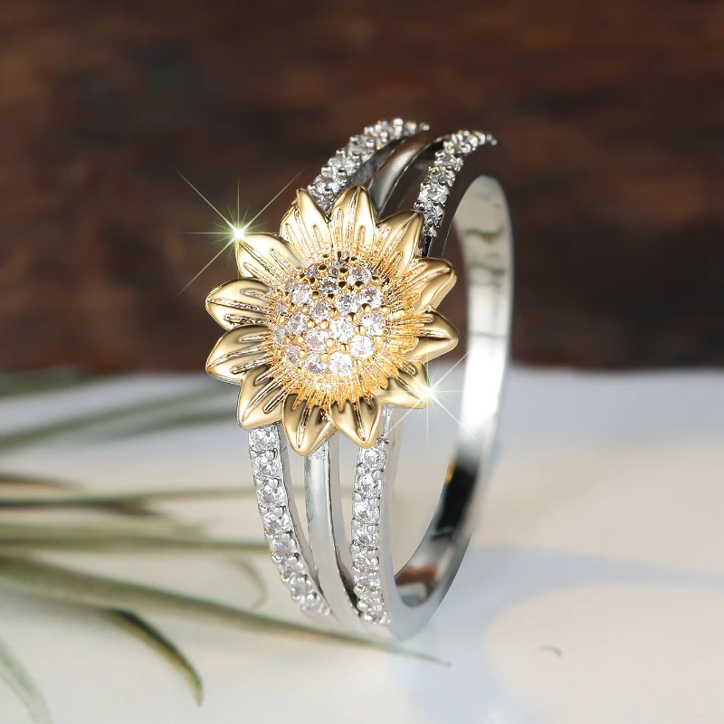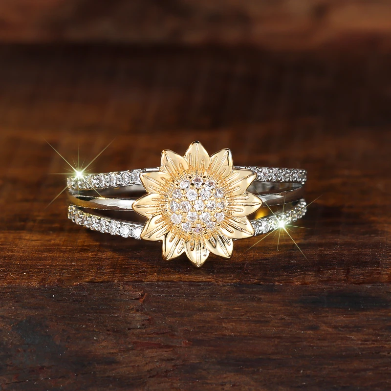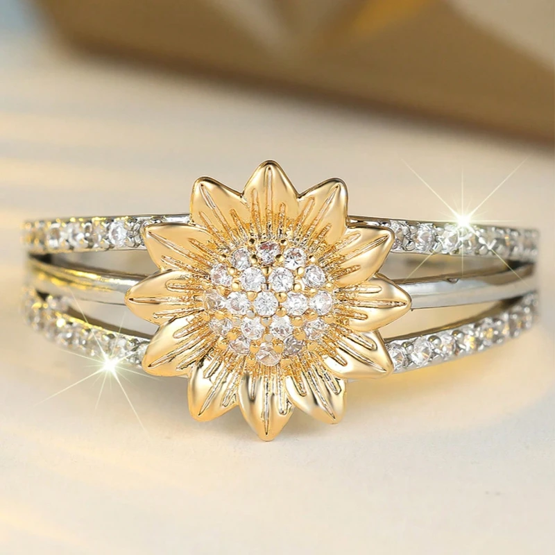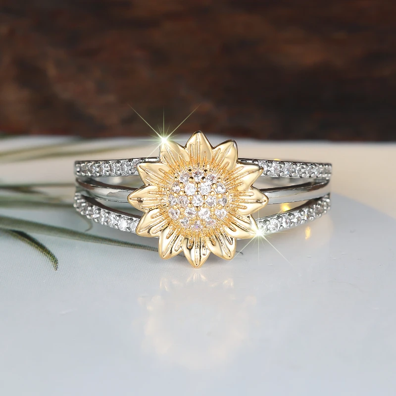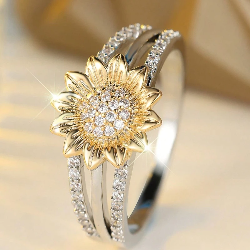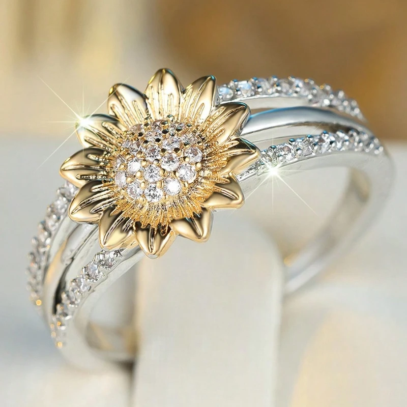 Sunflower Design Cubic Zirconia Inlaid Ring