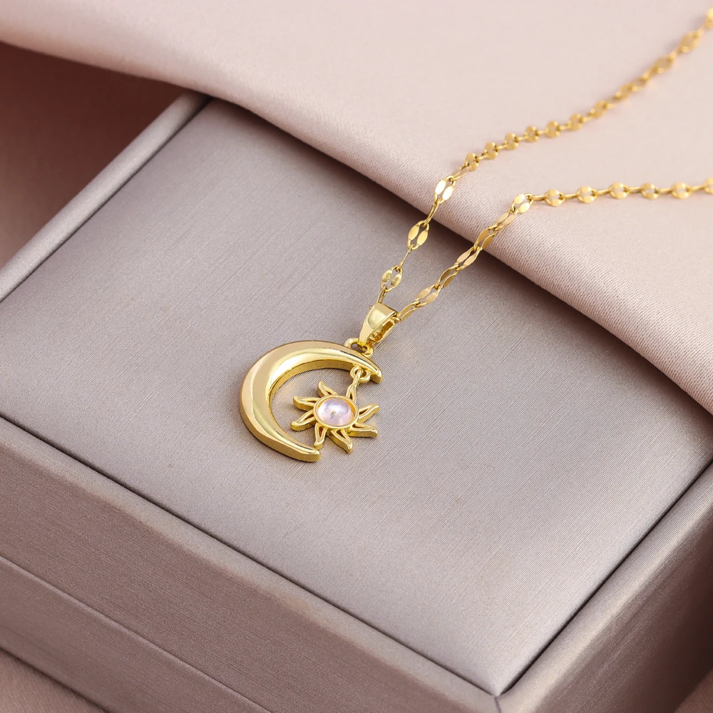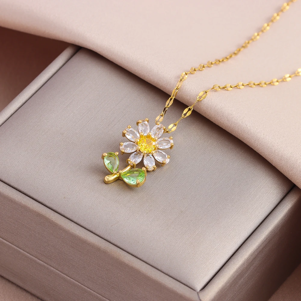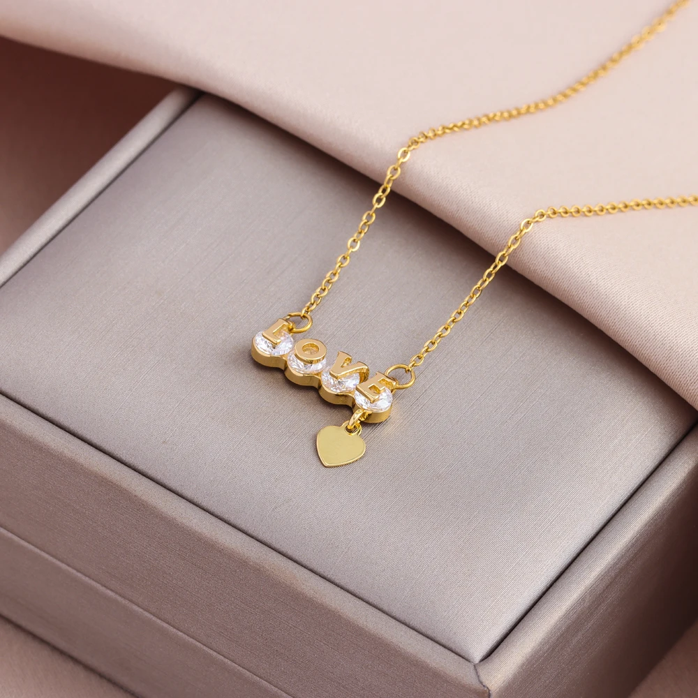 Sweet Sexy Zircon Crystal Pendant Stainless Steel Necklaces