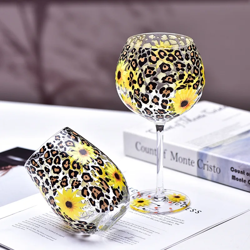 Vintage Amber Red Wine Glass Leopard Print Handmade Creative Crystal Goblet Art Apple Cup Whiskey Glass Cup Fine Wine Glasses
