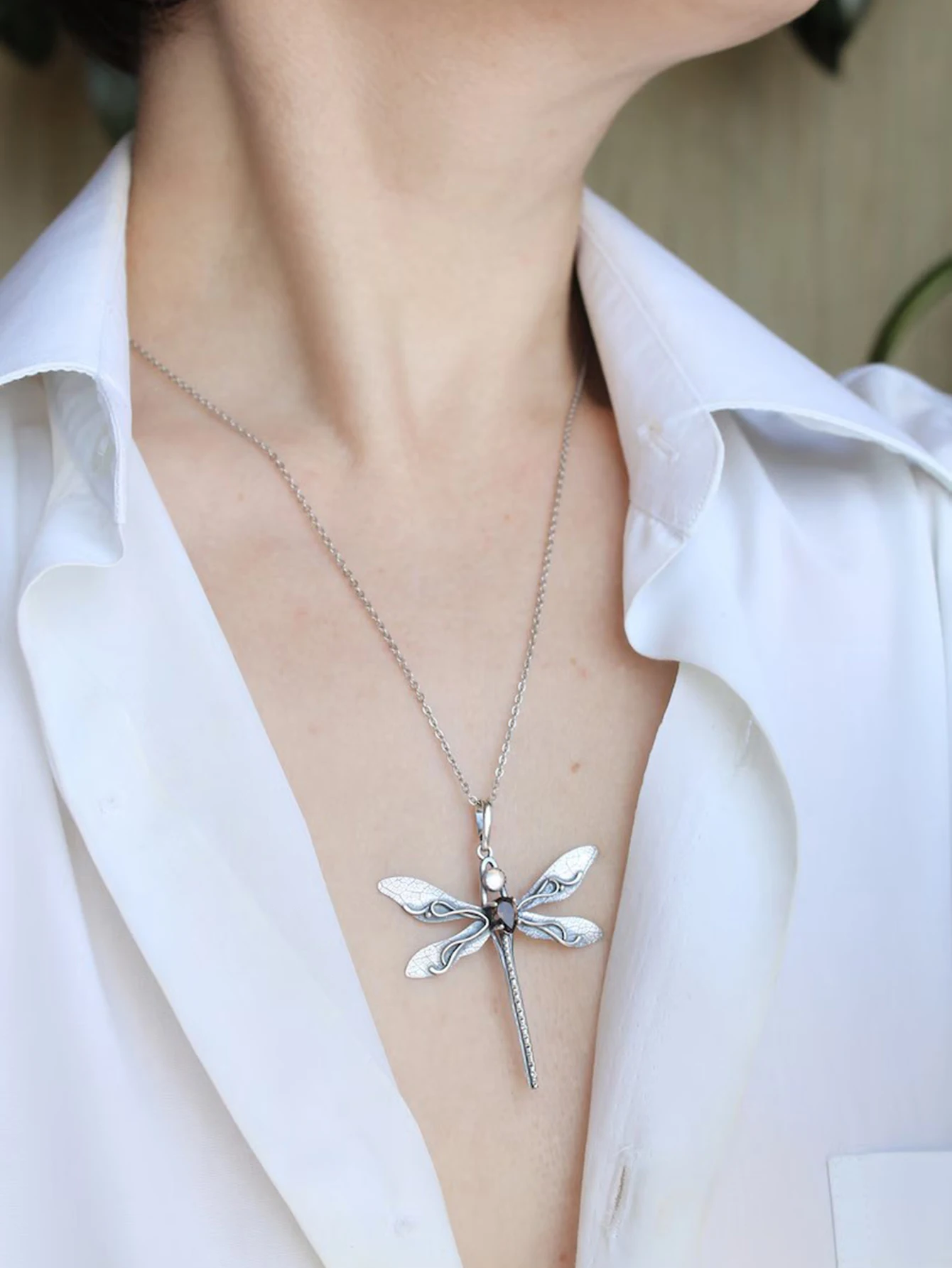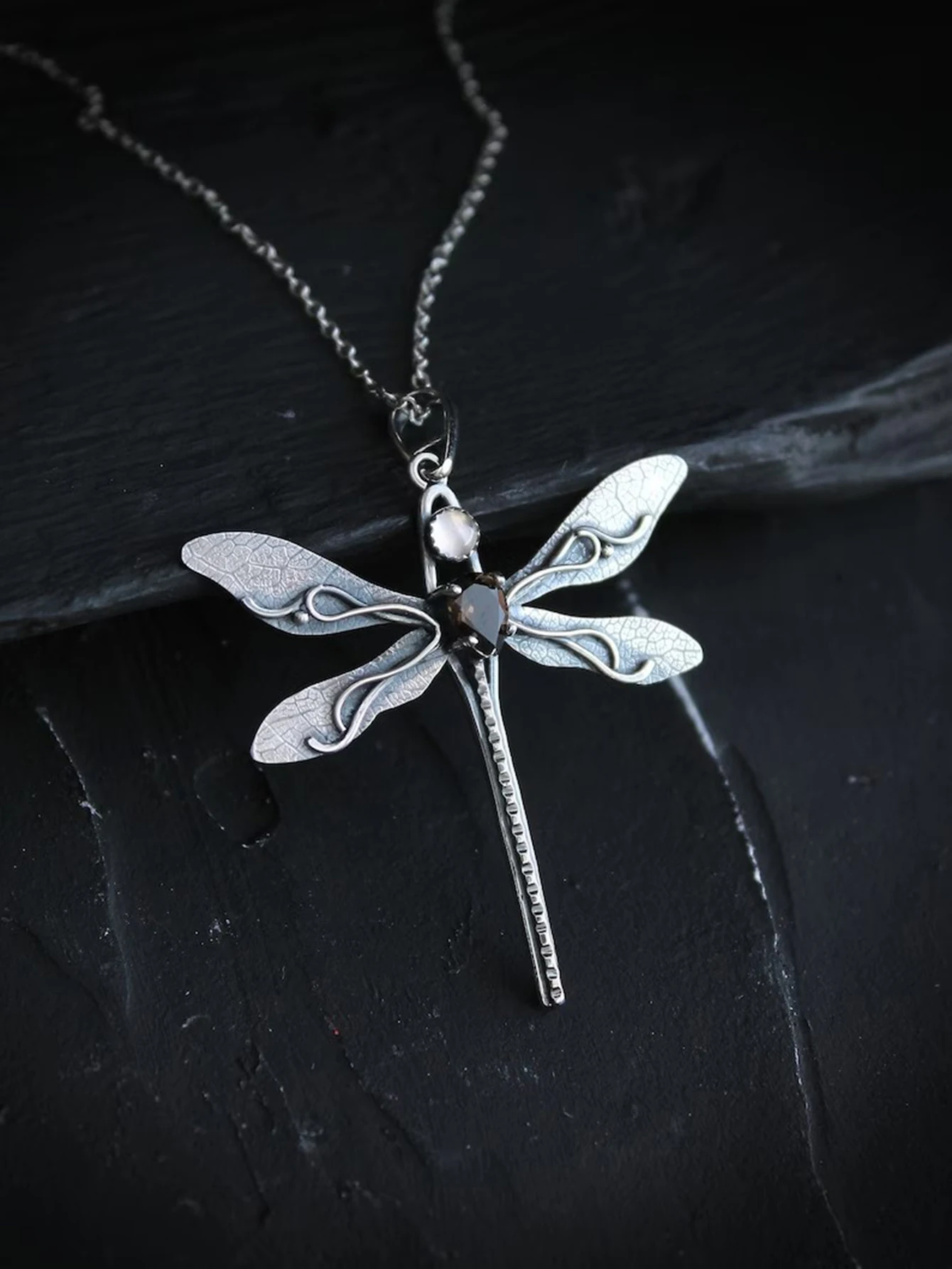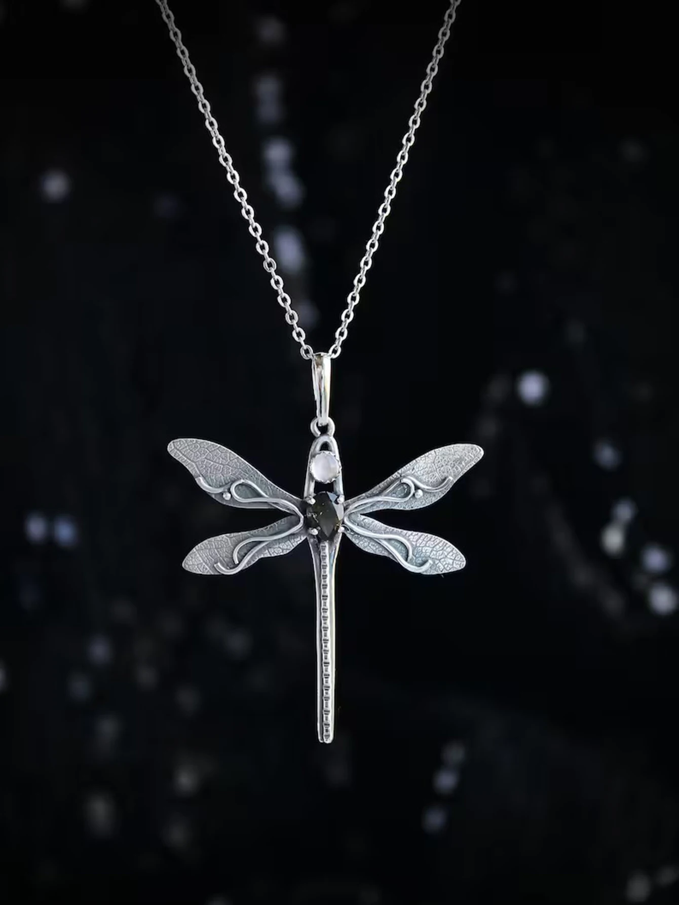 Model Name: 1Pc Vintage Dragonfly Animal Geometric Simple Style Alloy Silver Color Pendant Necklace Woman Party Daily Gift