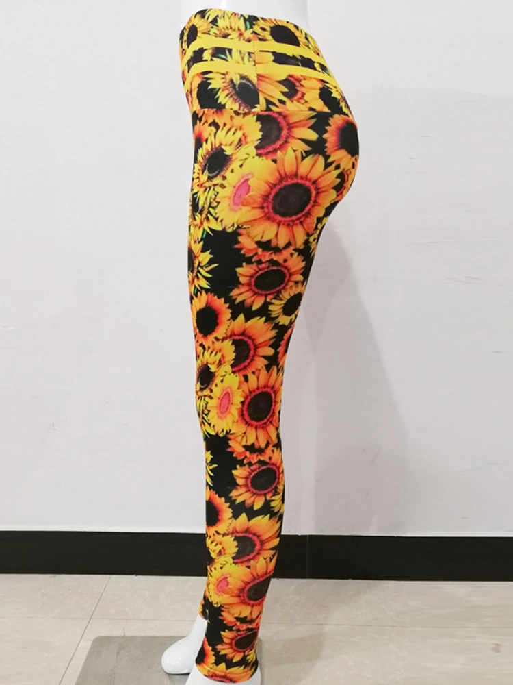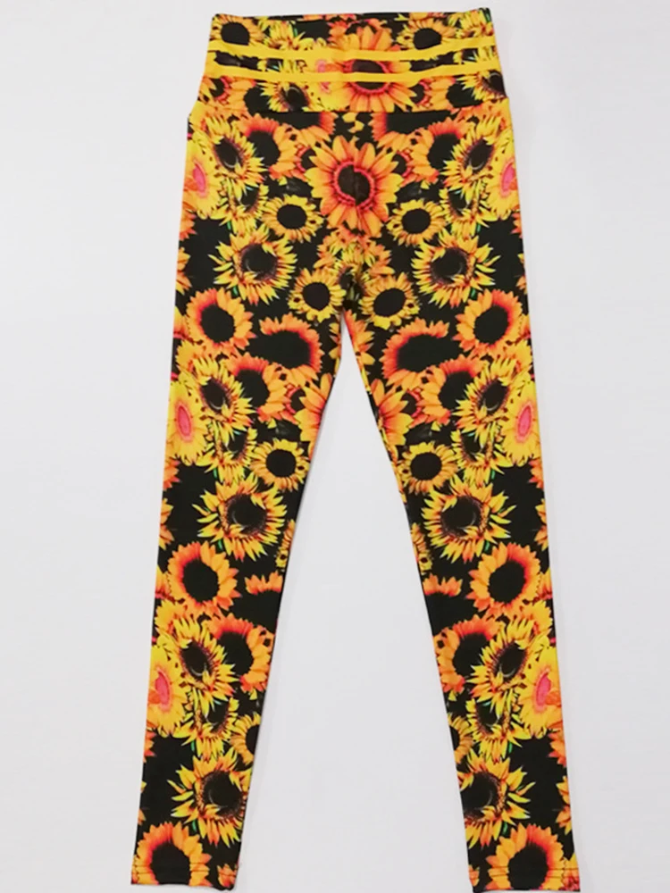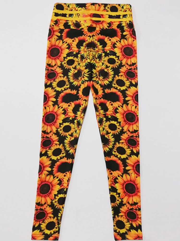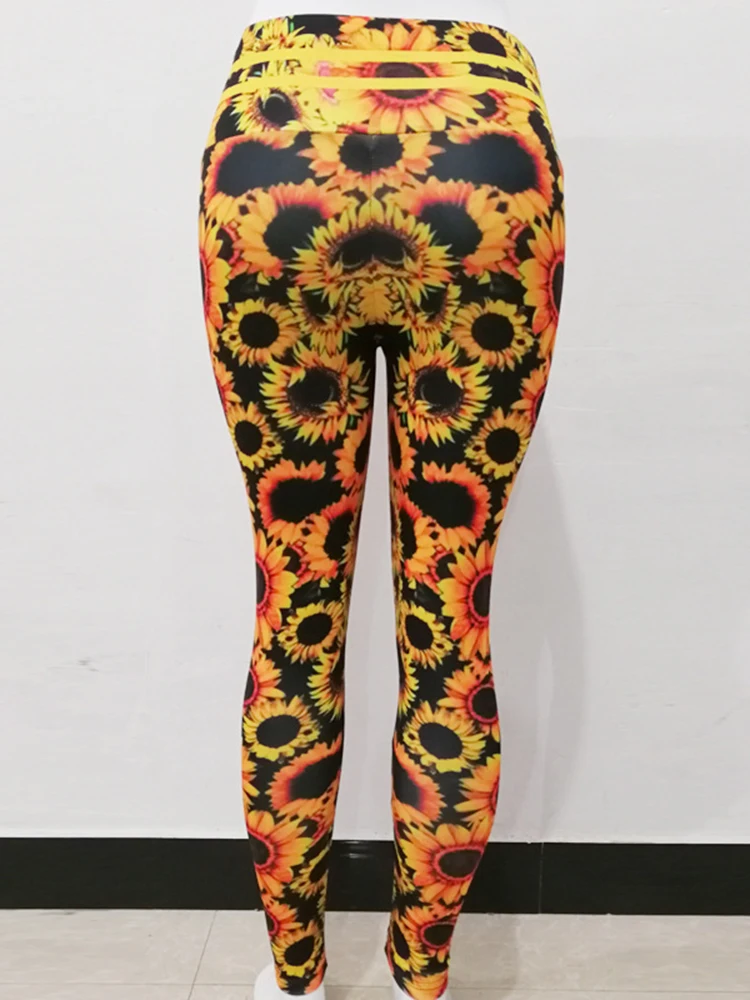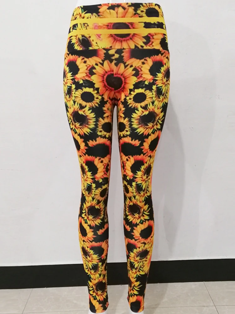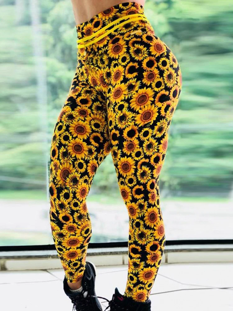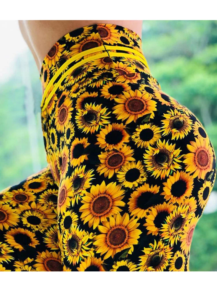 Outfits Sunflower Printed Leggings Workout Tights Fitness Women Soft Yoga Pants High Waisted Gym Wear Spandex Push Up Leggins