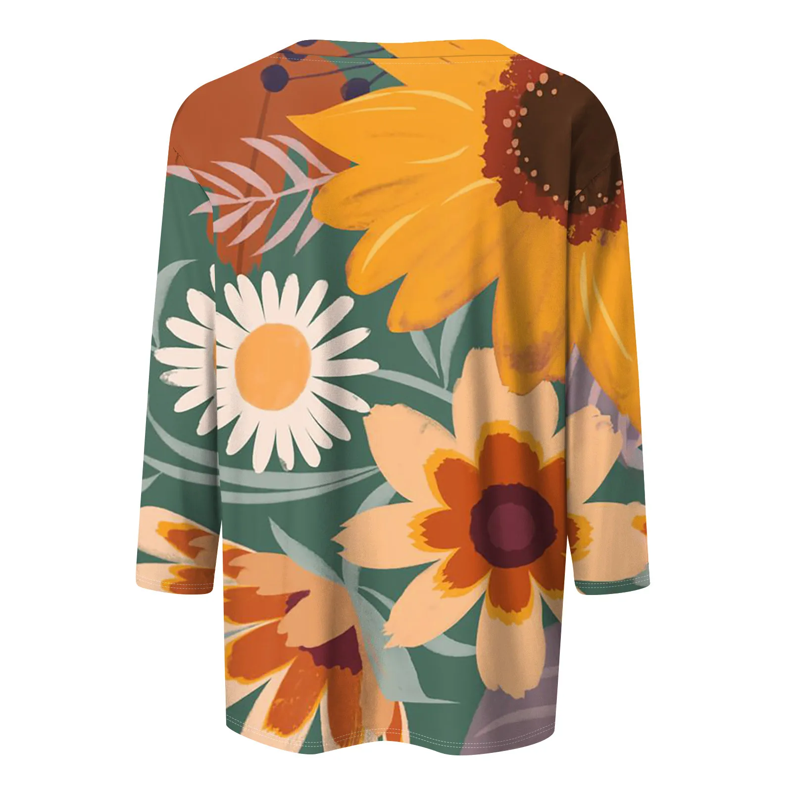 Women's Loose Casual Floral Print Round Neck Three-quarter Sleeves
