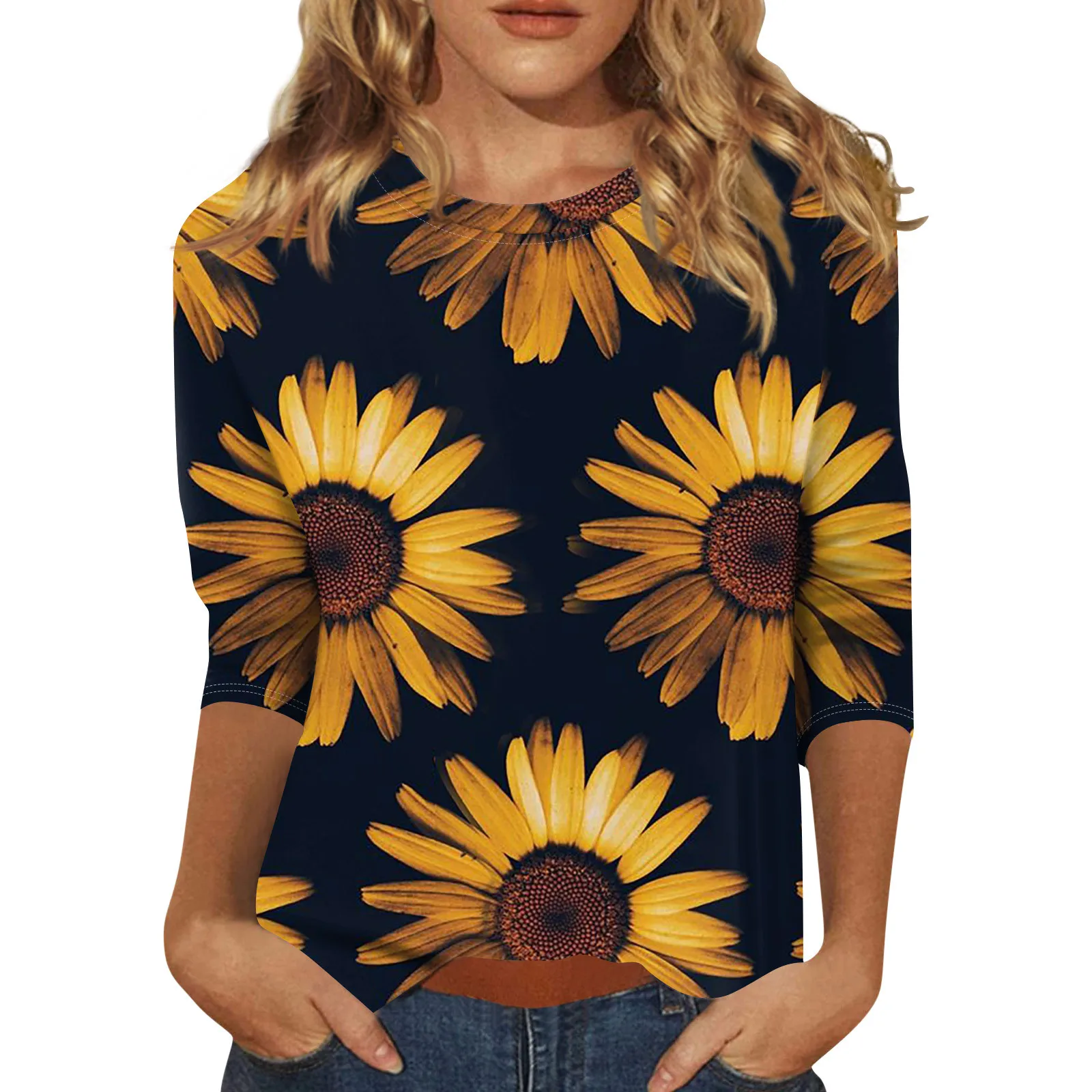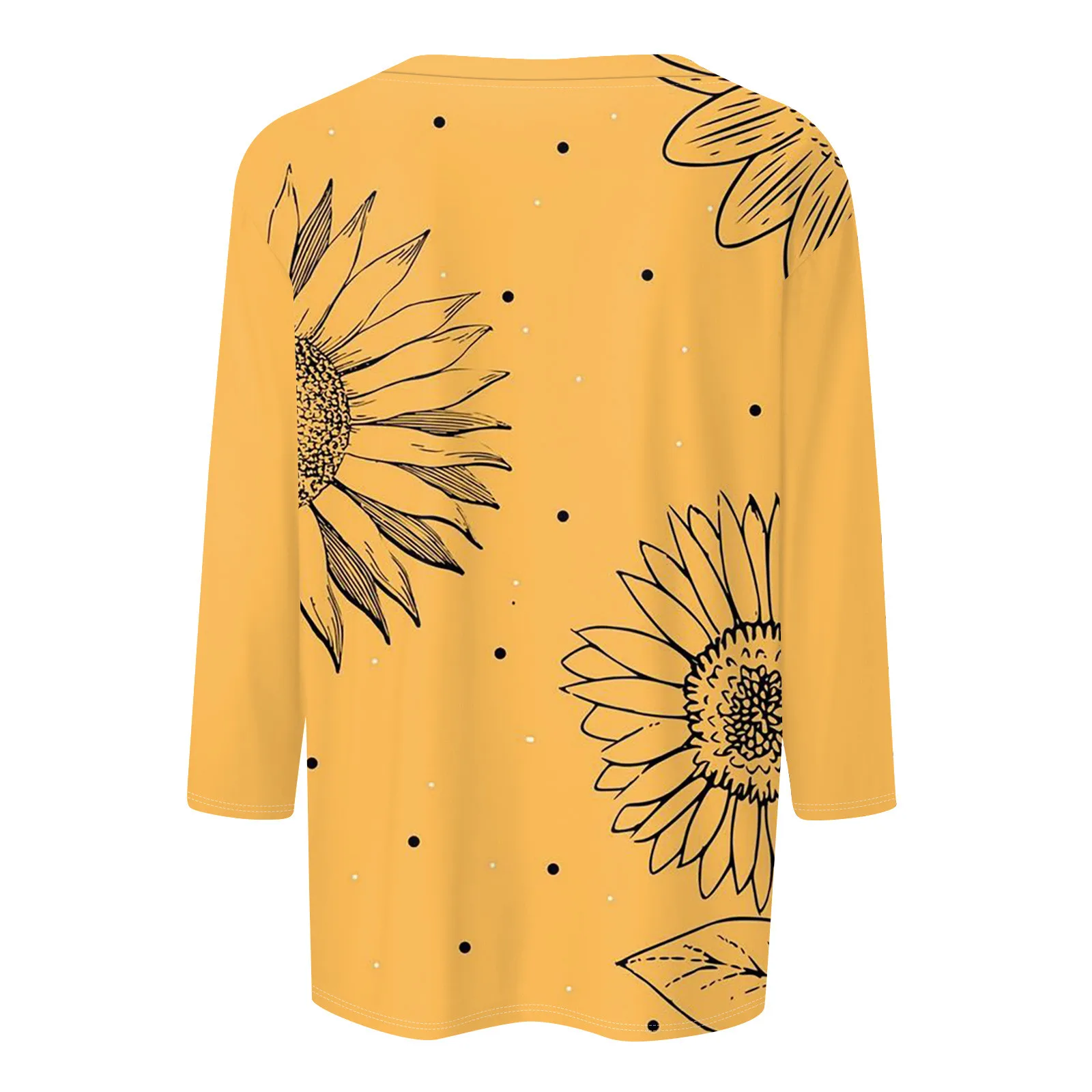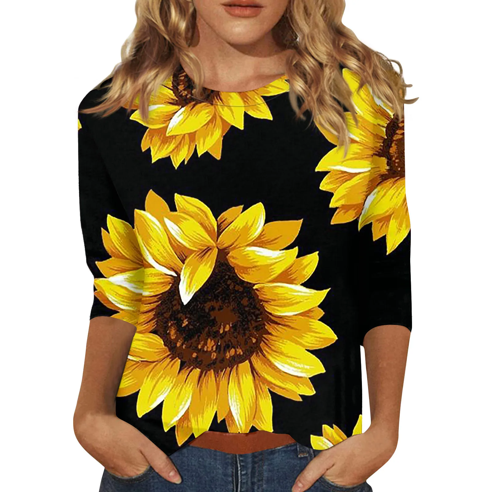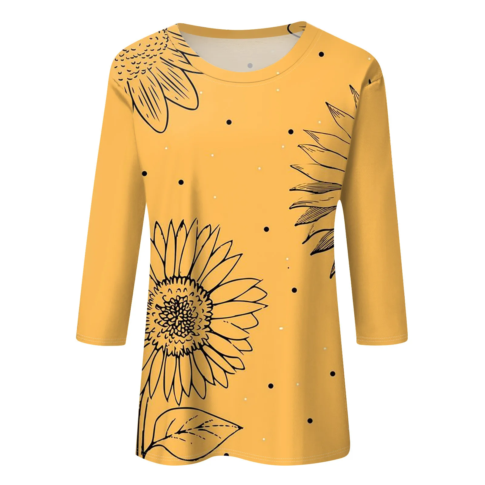 Yellow Sunflower Flower Print Blouse For Women Summer Vintage Casual Holiday Short Sleeve O Neck T-Shirts Top 2024 Clothes