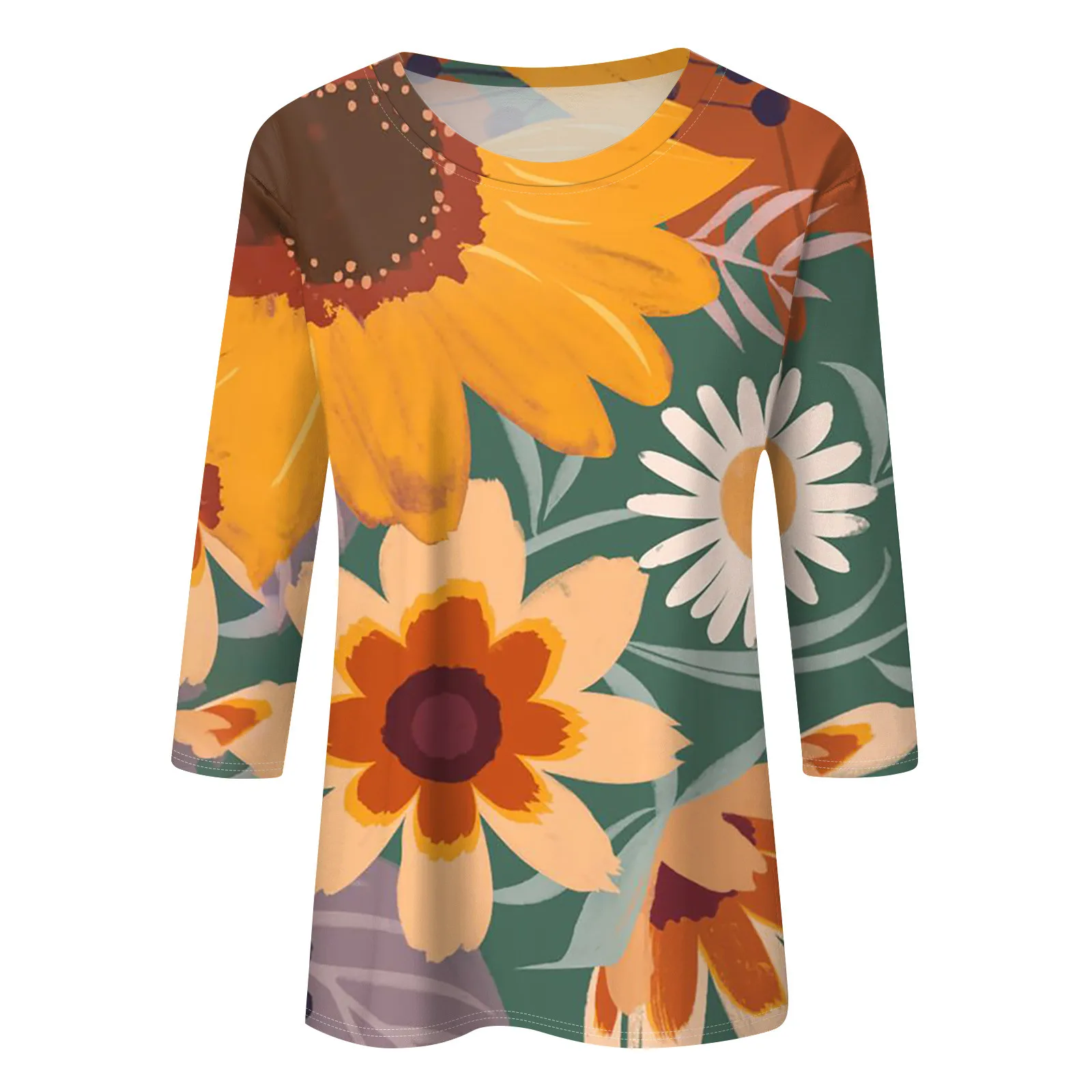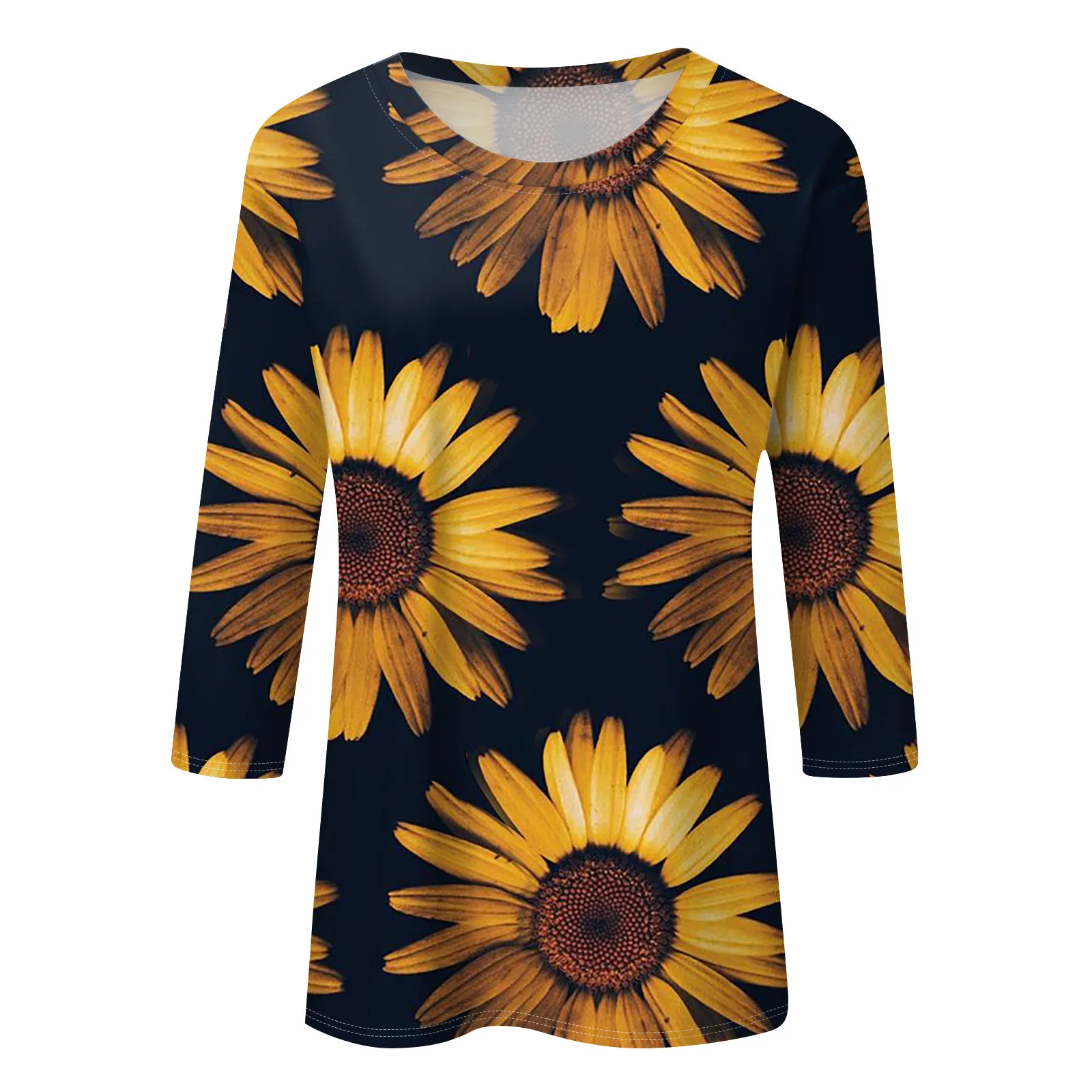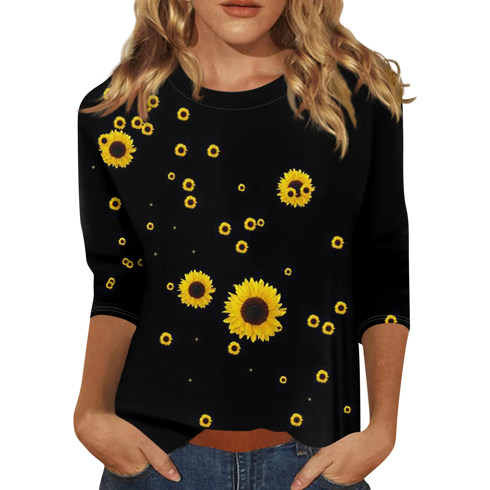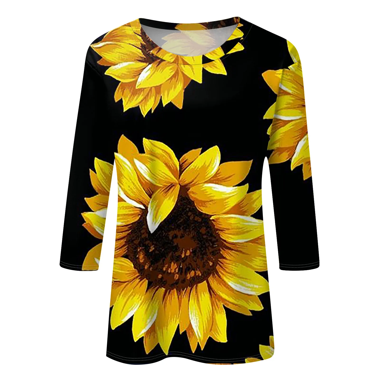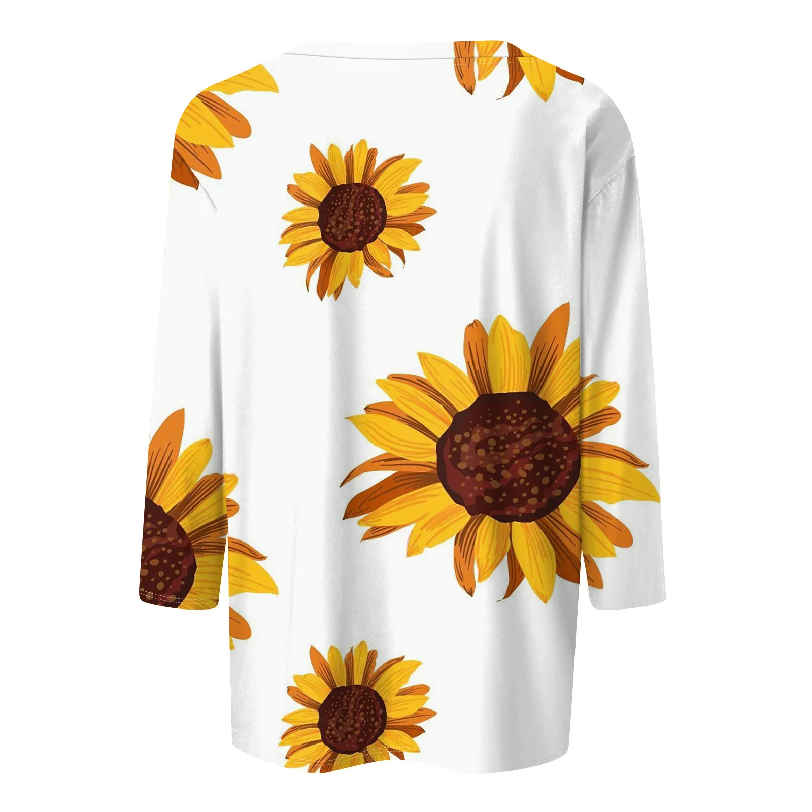 Yellow Sunflower Flower Print Blouse For Women Summer Vintage Casual Holiday Short Sleeve O Neck T-Shirts Top 2024 Clothes