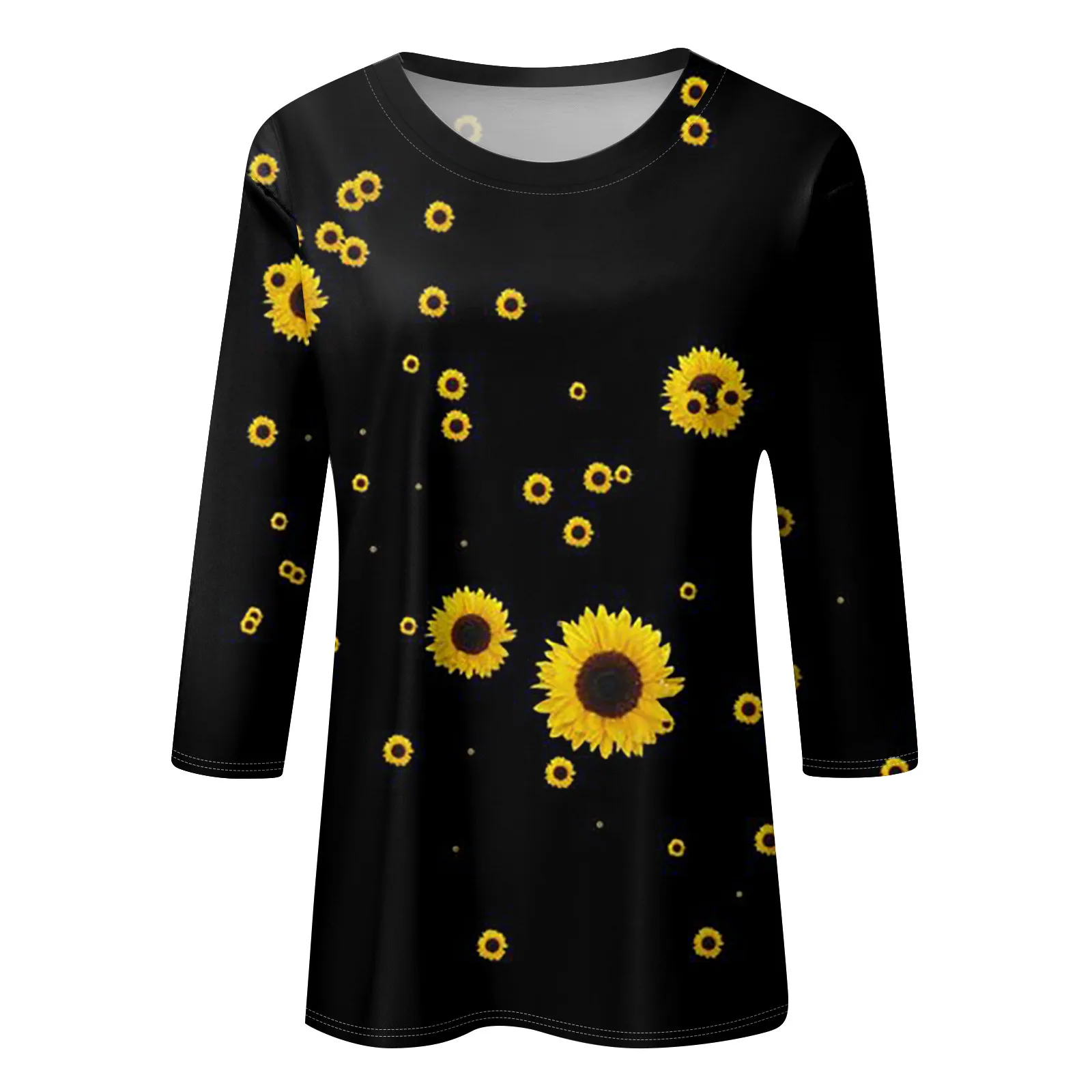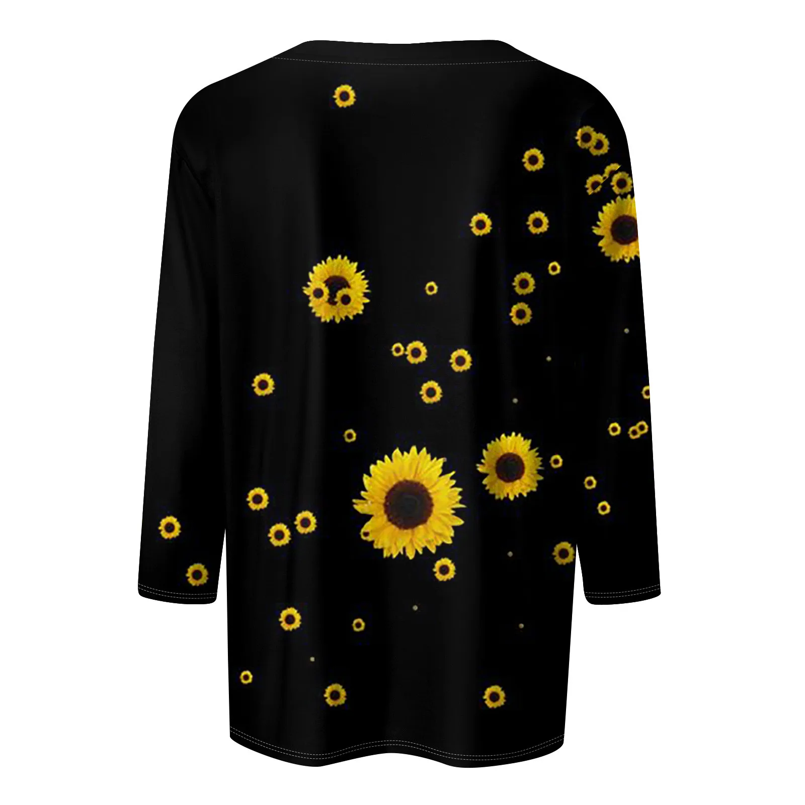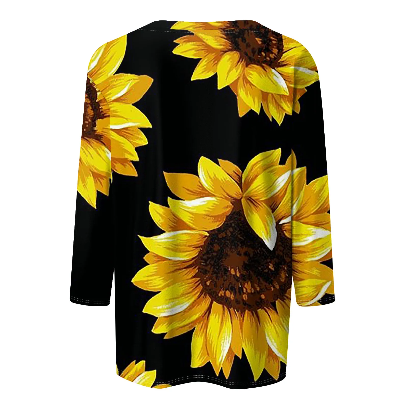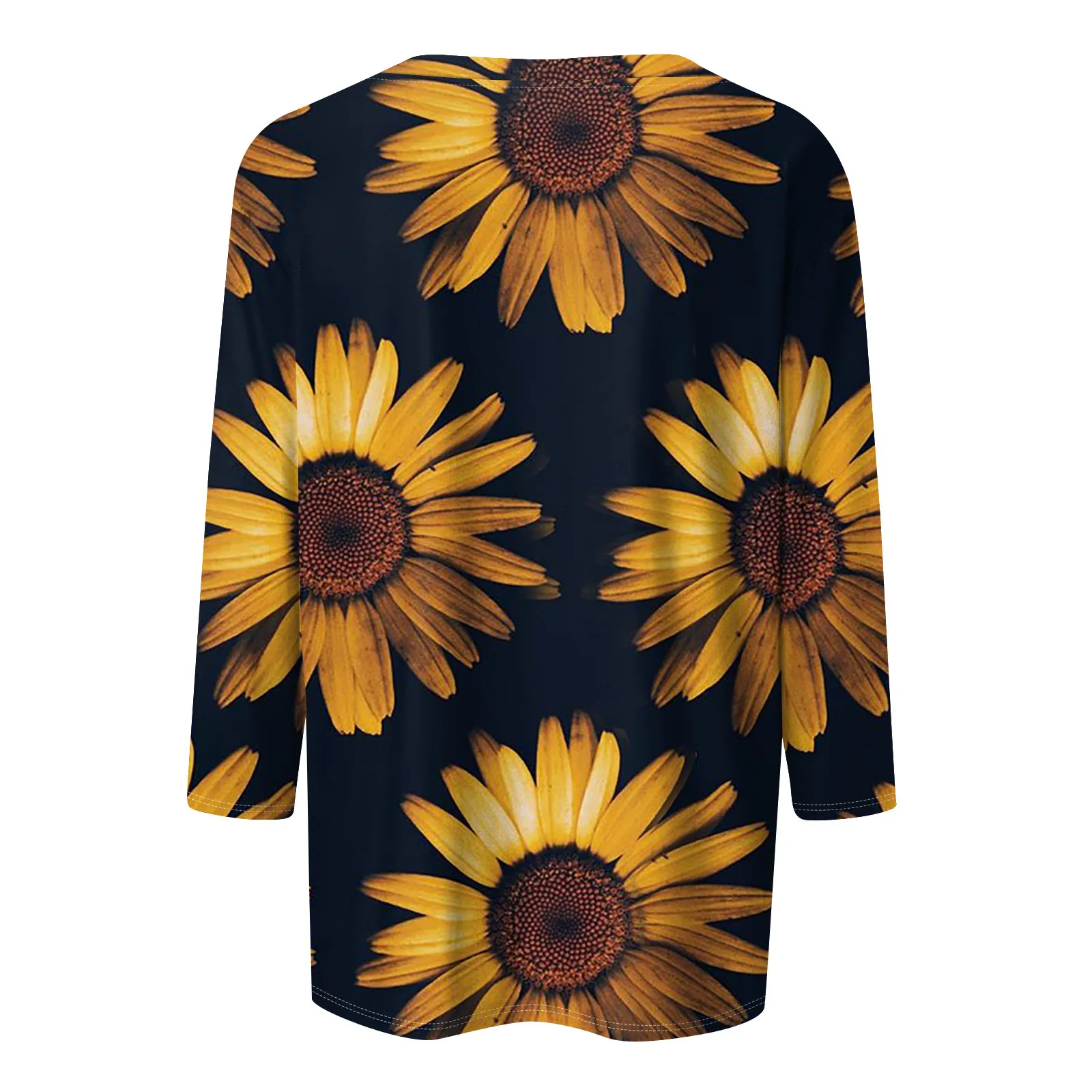 Yellow Sunflower Flower Print Blouse For Women Summer Vintage Casual Holiday Short Sleeve O Neck T-Shirts Top 2024 Clothes